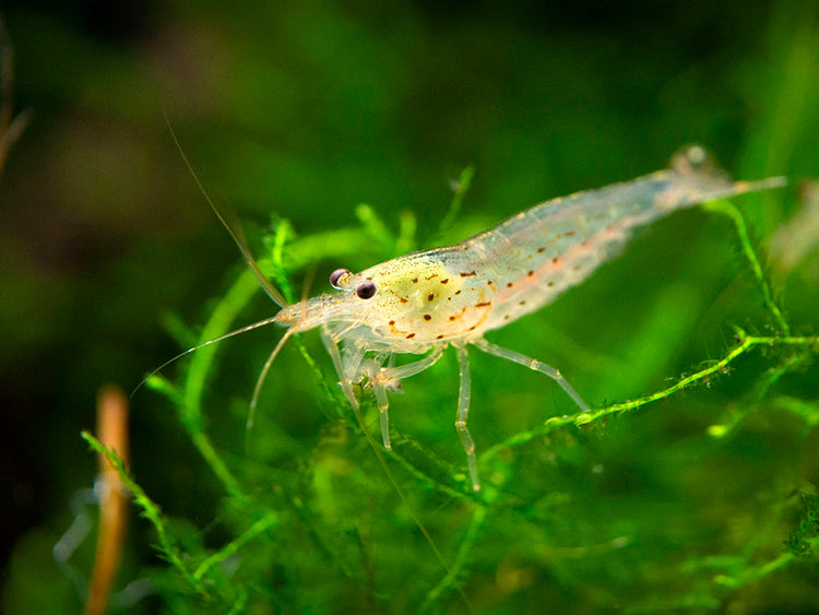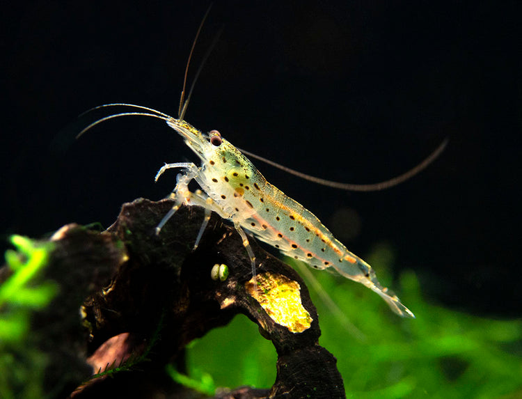 This shrimp is a scavenger and is very useful in planted and nano aquariums. The bulk of its diet is biofilm, algae, and decaying plant matter so it will work diligently to clean up the waste in any aquarium. It feeds constantly, so it displays constant activity. In a less mature aquarium, it should be fed high quality flake and mini pellet dry foods with high algae/spirulina/plant content. Providing natural botanicals for shrimp to feed on will not only help provide the water with natural tannins which can help boost shrimp immune systems, as they decay the shrimp will feed on the biofilm they create.