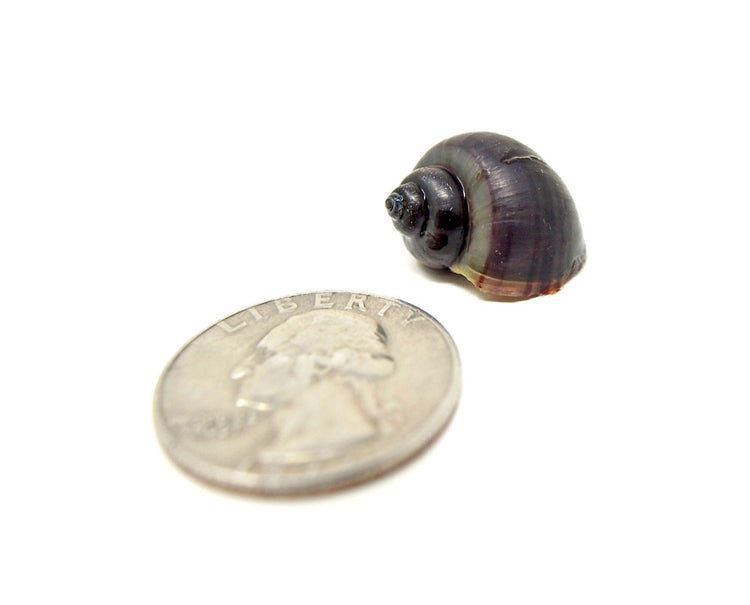 All Purple Mystery Snails' shells feature stunning coloration and range from a medium violet to a dark indigo.  Their bodies are reminiscent of black opals, as they are a very dark, almost black color with iridescent markings that are truly breathtaking when they catch the light.
