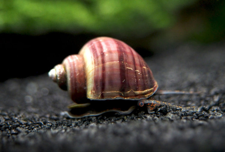 These large and striking snails are great for adding some color to your aquarium, but they also serve some very useful purposes.  They clean algae off of glass, plants, and decorations, they eat hair algae, and they keep your substrate clean and the correct color.  They are totally safe with any fish, shrimp, or plants, and are completely peaceful.  These snails are quite large as adults, growing up to 3 inches in diameter!