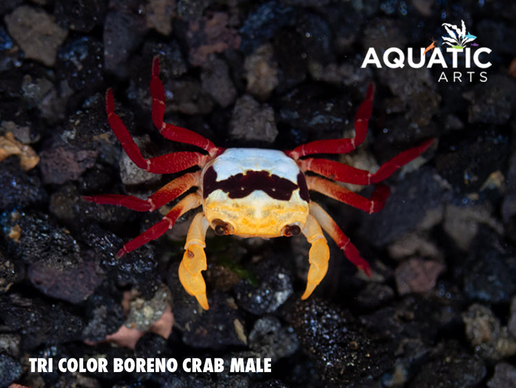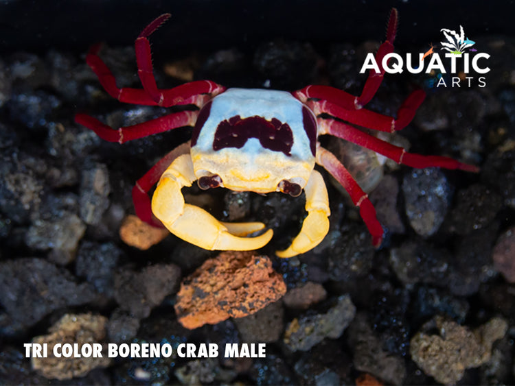 Tricolor Borneo Crabs are generally peaceful and can coexist with other non-aggressive species. Suitable tankmates include small, peaceful fish, snails, and other invertebrates. Avoid housing them with large or aggressive species that may pose a threat.