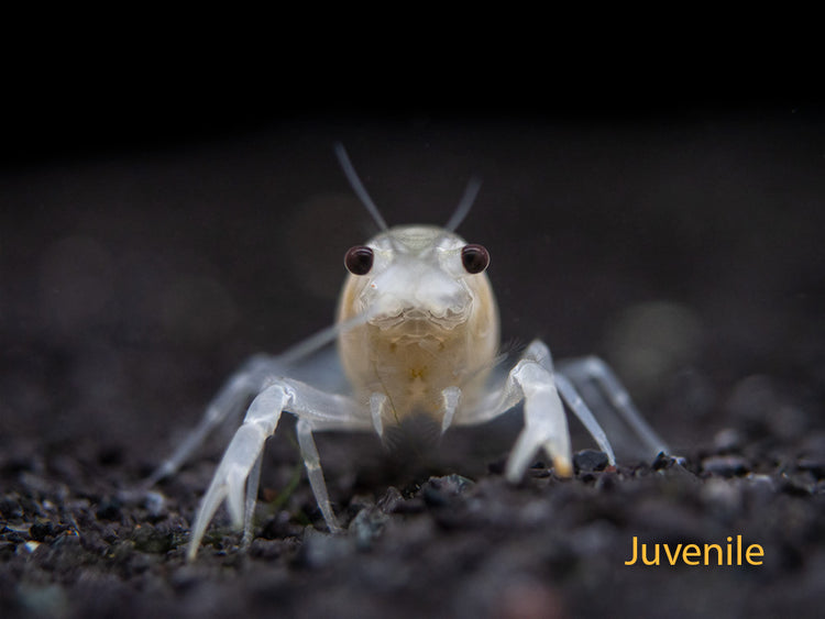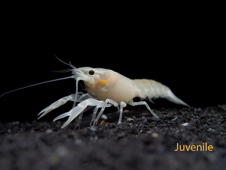 - 1 Juvenile White Specter Crayfish - 1/2 inch+ (A younger and smaller variant of the White Specter Crayfish at a lower price than our young adult specimens. This is a particularly fast-growing, hardy species and will usually grow well into adult size and coloration within 1 to 3 months. In the meantime, any customers who choose to go with a juvenile specimen can save some money and experience the excitement of watching their little crayfish grow!)