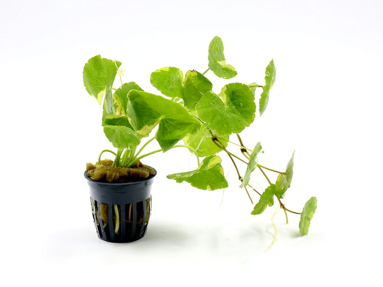 Bring a splash of color and texture to your aquarium or terrarium with Variegated Pennywort (Hydrocotyle leucocephala "Variegated")! This versatile plant features round, scalloped leaves with unique cream and green variegation, making it a standout addition to any setup. Its adaptable nature and striking appearance make it a favorite among aquascapers and plant enthusiasts alike.
