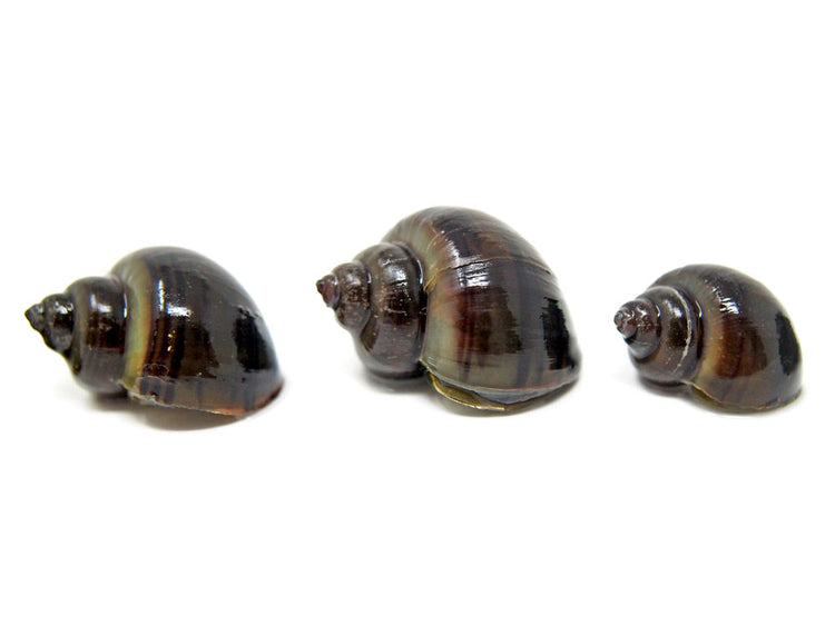 - 5 Black Mystery Snails (Pomacea bridgesii), which ship out as young snails that range from 1/4 to 1 inch in length. ($18.99)