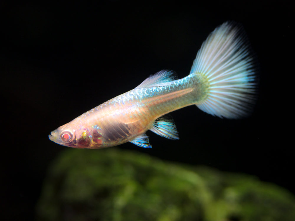 Full Platinum Albino Guppy, (Poecilia reticulata var. "Full Platinum Albino") - Tank-Bred!