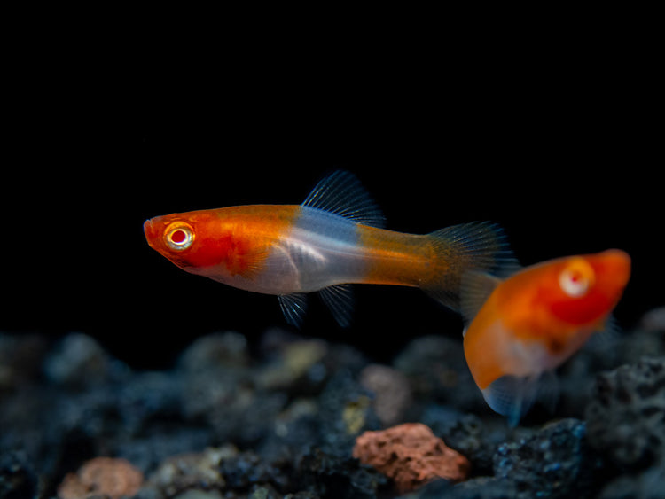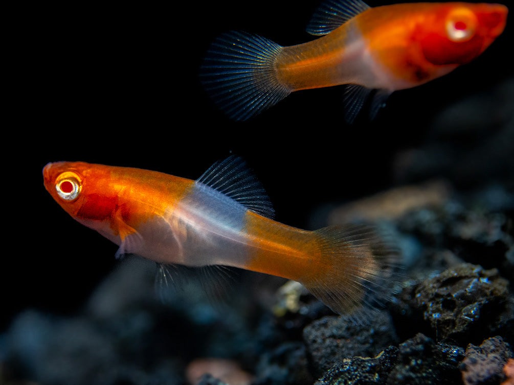 While not a picky eater, the Albino Koi Kohaku Swordtail will thrive and remain very colorful on a varied diet of meaty foods. High-quality flake food, pellets, and frozen or freeze-dried tubifex and bloodworms will all be readily accepted.