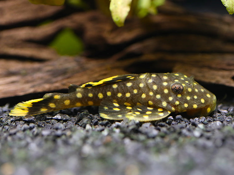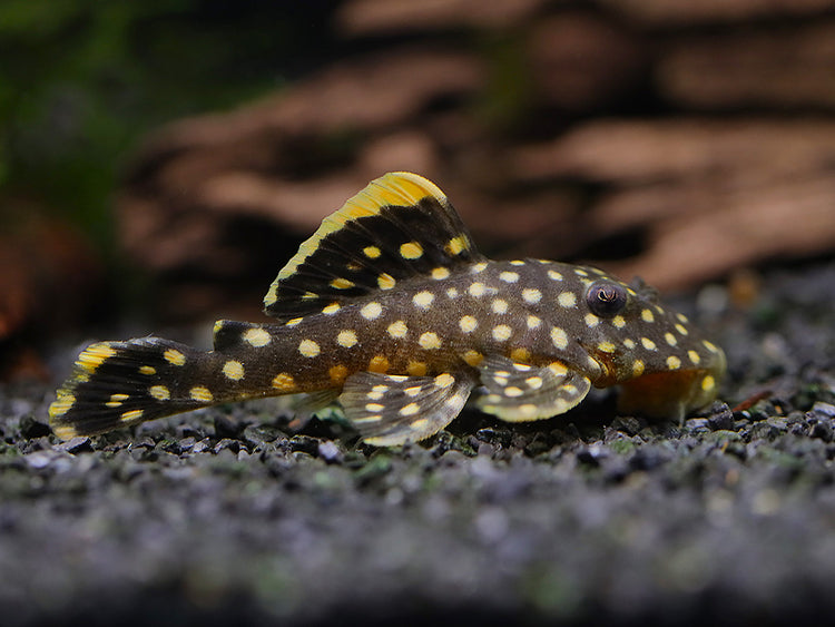 Gold Nugget Plecos are peaceful and make excellent additions to community aquariums. They coexist well with tetras, rasboras, Corydoras, and other mid- or top-dwelling fish. They may display mild territoriality toward other plecos or bottom dwellers if space and hiding spots are limited.
