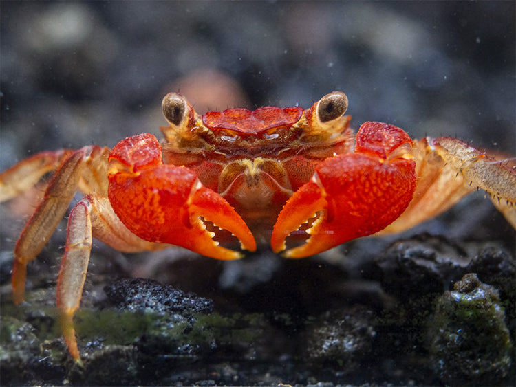 PLEASE READ: This species is a semi-terrestrial crab. NOT FULLY AQUATIC. Its habitat must be at least half (and preferably more) land with freshwater. It is an ideal paludarium animal. Our Vampire Crabs of different colors are not the same species and should not be kept together.