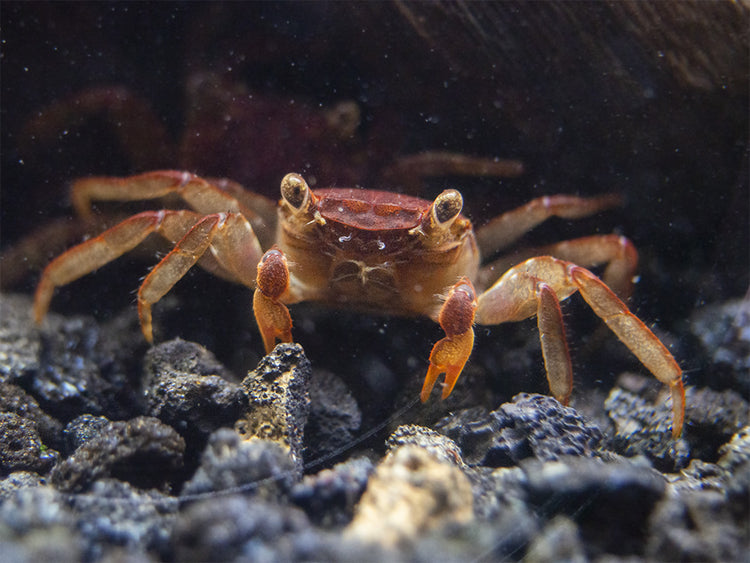 The Lars's Maroon Red Vampire Crab is a fascinating semi-terrestrial species that is beautifully marked. It is communal with its own species and is an excellent choice for the paludarium, even nano-sized enclosures!