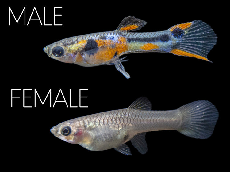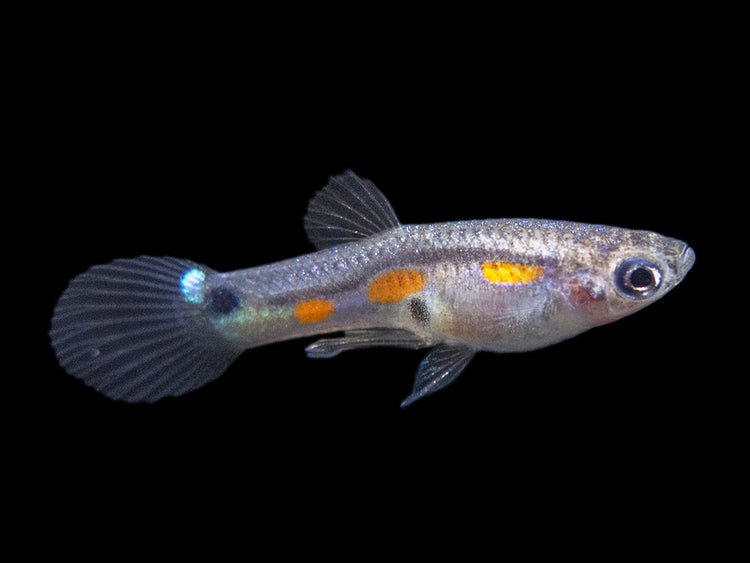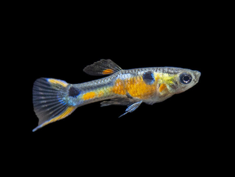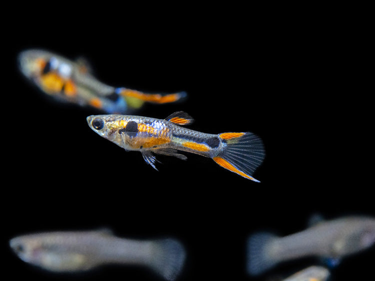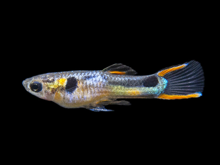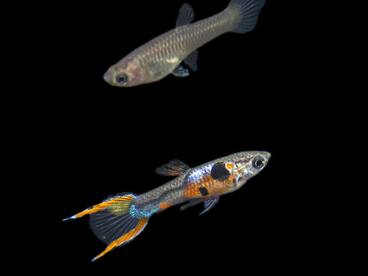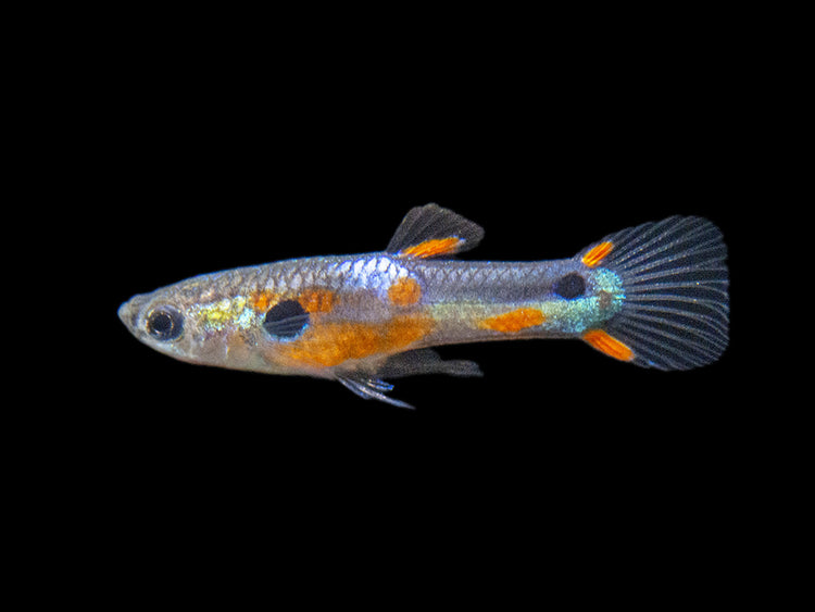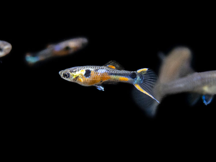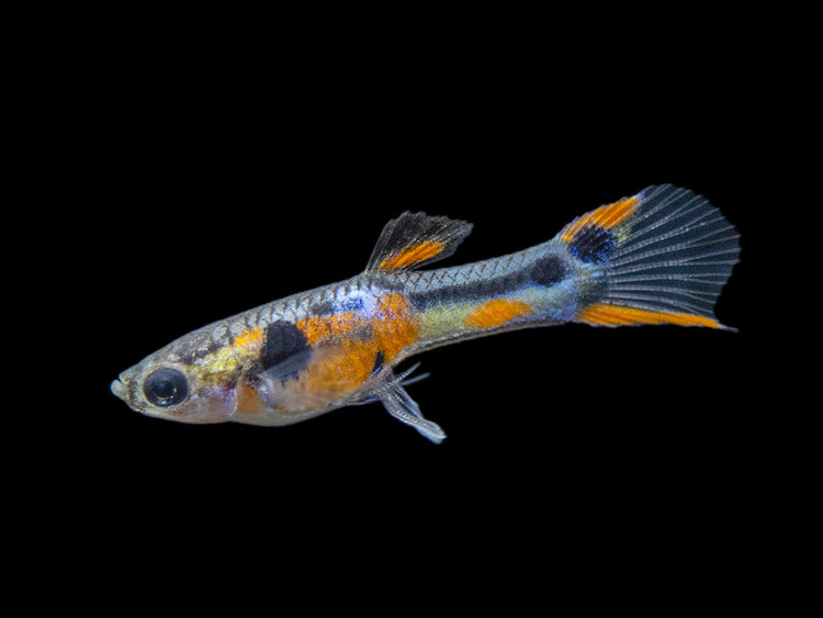 This magnificent endler is a very vibrant and beautifully colored variant! Even females display a small splash of color on their tail!