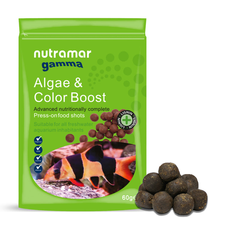 Nutramar Freshwater Algae & Color Boost Shots - Premium Food for Herbivorous Freshwater Fish 12mm / 60g