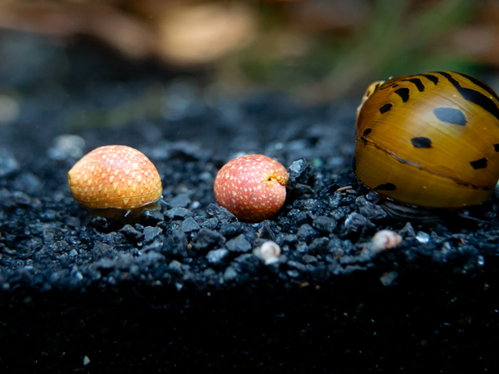 Peaceful Coexistence: Their non-aggressive temperament makes Pink Lady Snails excellent residents in community aquariums, harmoniously cohabiting with various fish, shrimp, and other snail species.