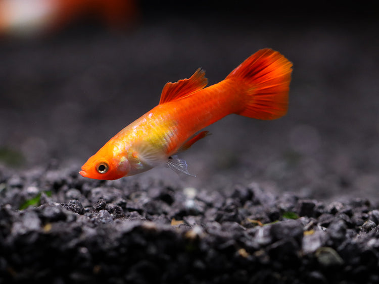 Highly social and active, Red Cap Kohaku Guppies thrive in groups and bring life and charm to any aquarium.