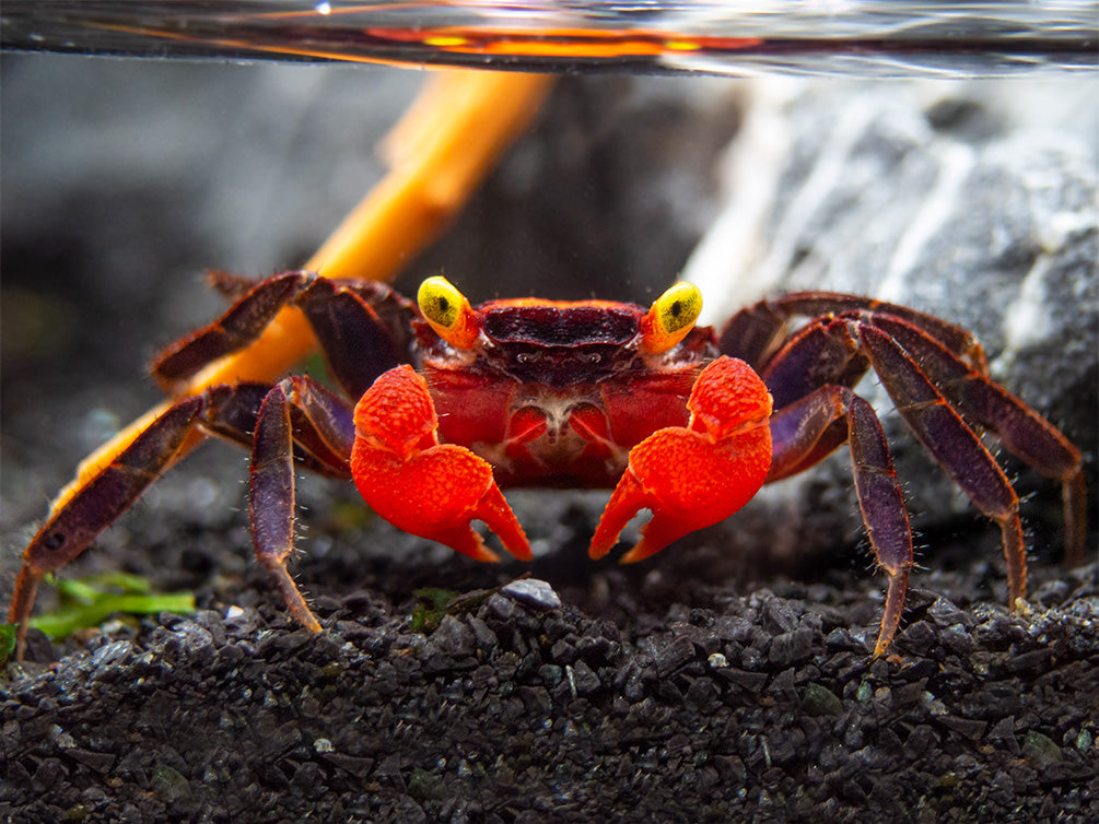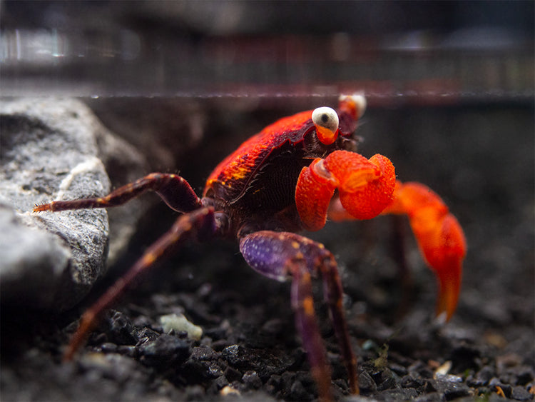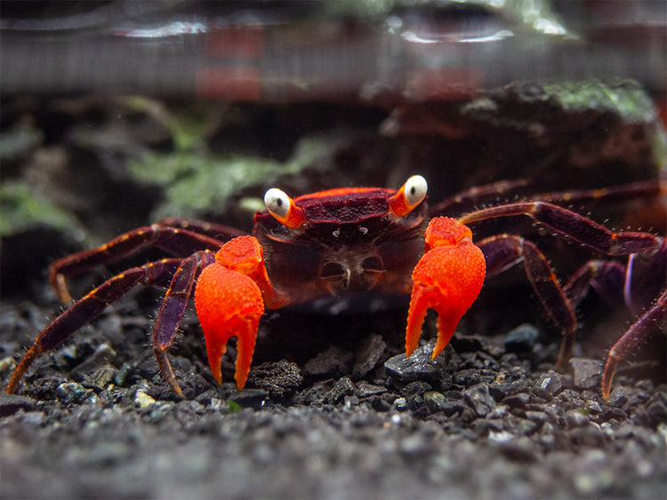 PLEASE READ: This species is a semi-terrestrial crab. NOT FULLY AQUATIC. Its habitat must be at least half (and preferably more) land with freshwater. It is an ideal paludarium animal. Our Vampire Crabs of different colors are not the same species and should not be kept together.