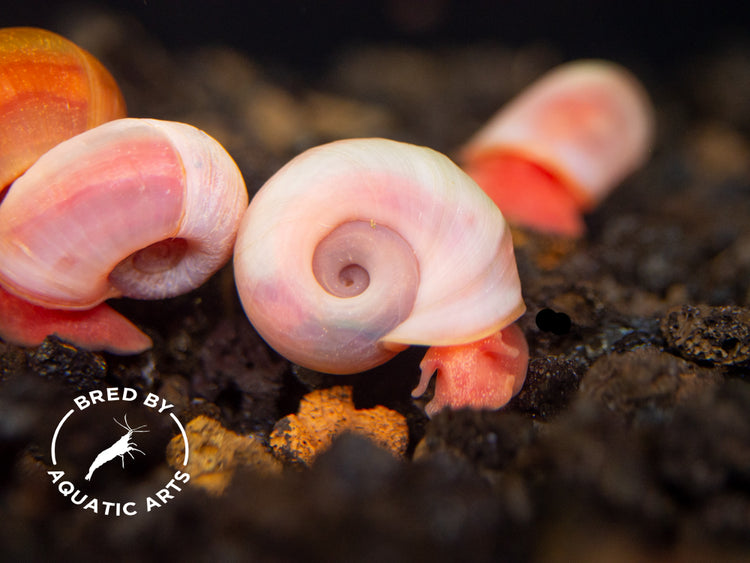 - Recommended Aquatic Arts tank mates: Other types of snails (Nerite snails, Mystery Snails, Sulawesi Snails, etc.), dwarf shrimp (such as Blue Velvet shrimp, Sakura Fire Red Cherry Shrimp, Neon Yellow Shrimp, etc.). They can also be kept with small to medium-sized, non-aggressive fish.