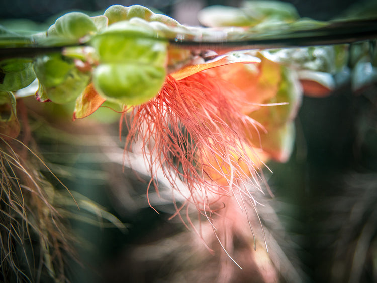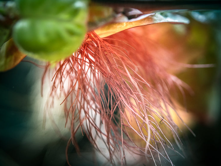 Red Root Floater (Phyllanthus fluitans) is a South American floating plant that is known and highly desired for its bright red roots and underside. Under high lighting, its leaves can turn completely red! This hardy plant propagates quickly and can provide shade to areas of the aquarium, which will encourage more reclusive species to come out of hiding. This is a truly beautiful and very beneficial plant for aquariums with gentle water flow.