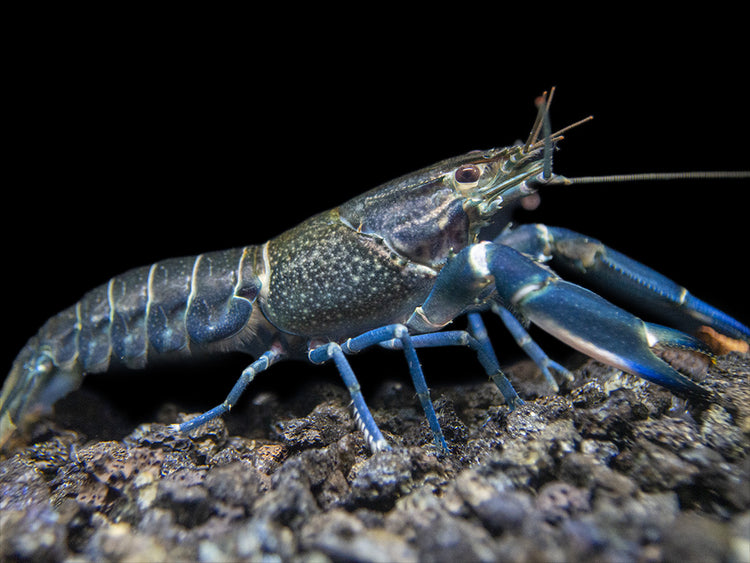 As with all of our crayfish, the coloration of the Starry Night Crayfish is EXTREMELY high quality - much higher quality than others on the market! This crayfish may TEMPORARILY change color and hide more than usual after molting, which may occur during shipping. If your crayfish has faded color and you find a molt in the bag or in your aquarium, do not worry; this is normal and the bright color will return in 2 weeks or less.