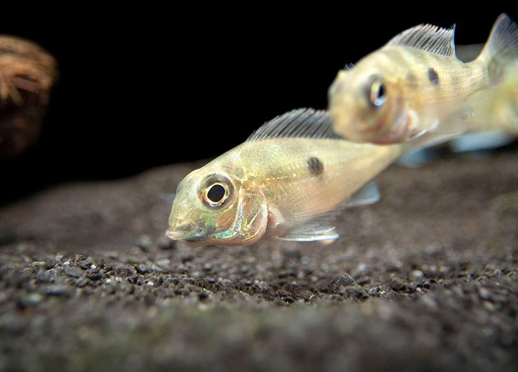 The Sven's Eartheater Cichlid requires an aquarium with a soft, sandy substrate and plenty of refuge such as clay pots, driftwood, and rock formations. Gravel and other larger substrates can damage the gills and organs of this fish as it feeds. Due to its digging behavior and occasional appetite for soft-leaved plants, it might not be compatible with some more delicate plants. However, it is fine with more durable plants that can be attached to rocks and driftwood. This cichlid is generally compatible with other peaceful fish as long as it has plenty of open terrain. Territoriality is typically at its peak during spawning, but this species tends to thrive and show its best coloration in groups of 6 or more. Subdominant specimens are more prone to bullying in smaller groups. Dwarf shrimp and other small, delicate invertebrates should not be kept with the Sven's Eartheater Cichlid, but more durable, larger shrimp and snails could possibly make good tankmates in a large enough aquarium Schooling fish such as large tetras and Corydoras catfish are good tankmates, as are suckermouth catfish and other relatively peaceful cichlids such as severums, angelfish, and even discus. If spawning is desired, tankmates of other species should be kept to a minimum or avoided altogether.