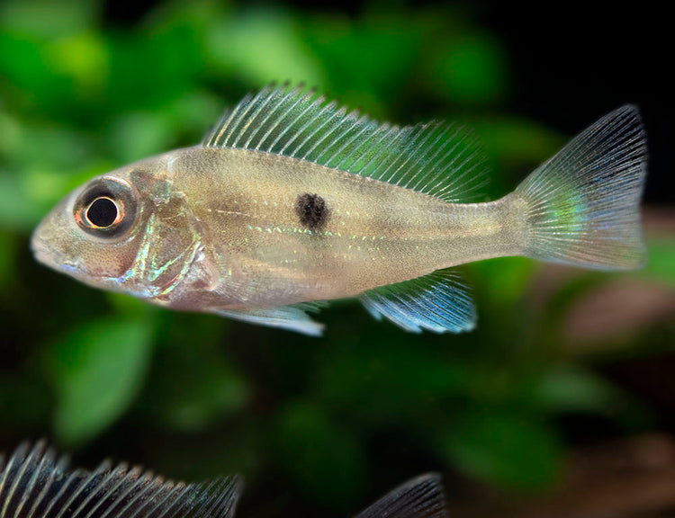 The Sven's Eartheater Cichlid (Geophagus sveni) is a very beautiful and surprisingly peaceful cichlid that is native to Brazil. It is regarded as one of the smaller and remarkably colorful "earth-eating" species. The entire Geophagus genus is known for its characteristic feeding behavior of scooping up mouthfuls of substrate, which it separates from any small invertebrate prey, and expelling the sifted substrate through its gills.