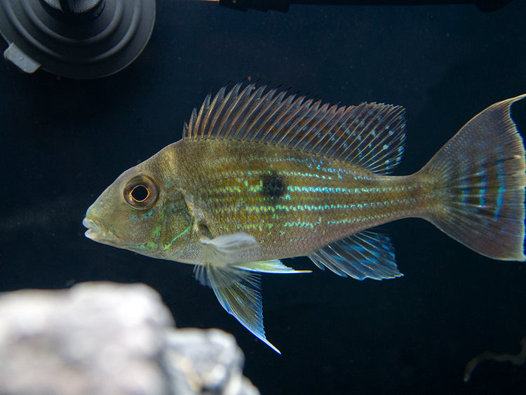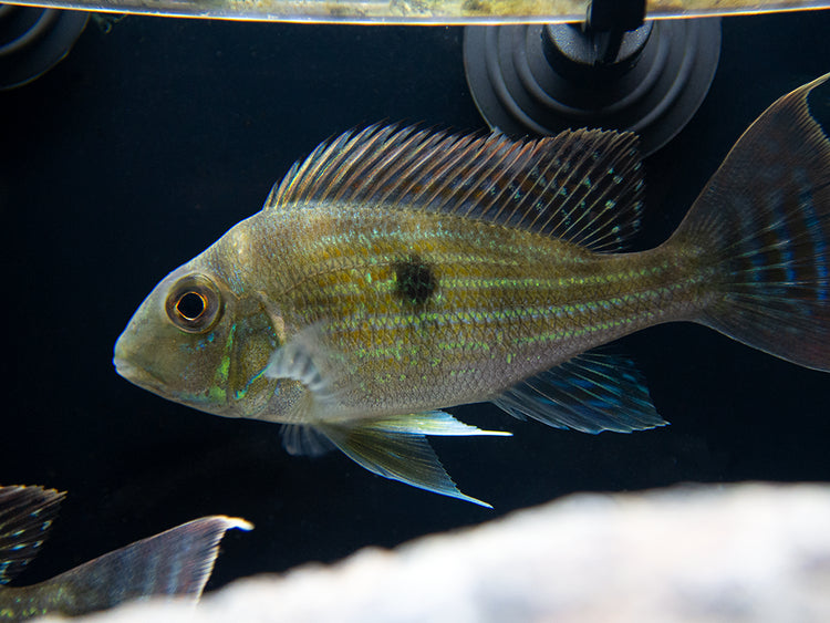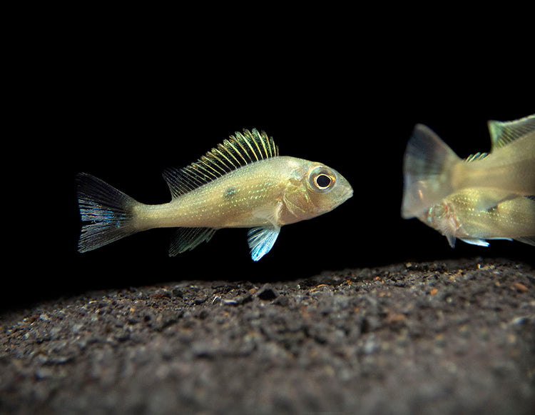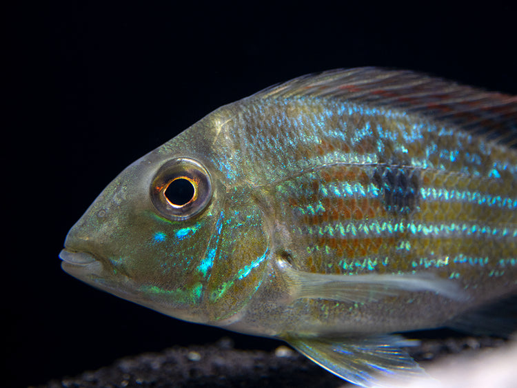 The Sven's Eartheater Cichlid is another ultra-colurful and relatively small, peaceful cichlid that can be a major standout in the aquarium!