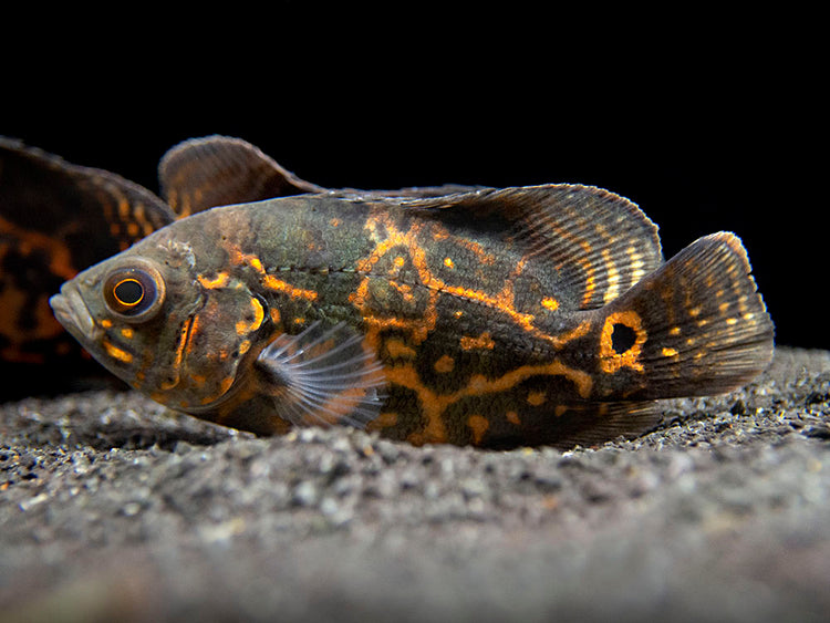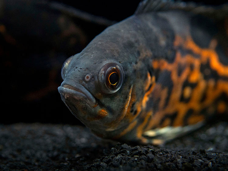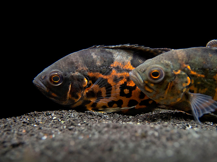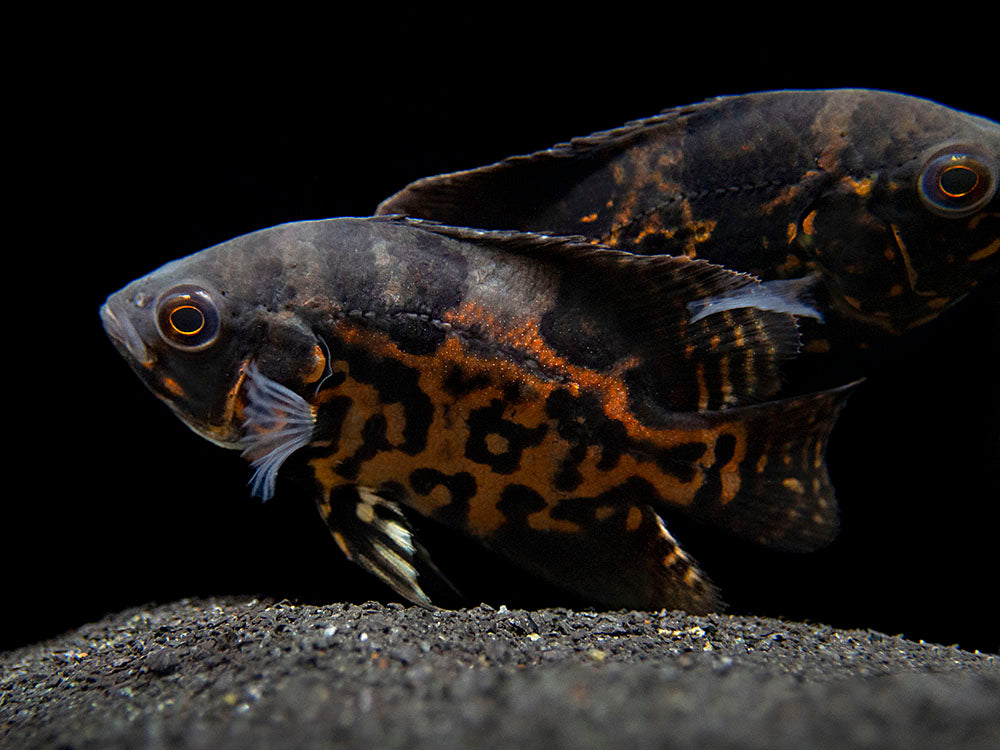The Tiger Oscar will thrive in a large aquarium with a sand or gravel substrate and sturdy decor as well as plenty of open swimming space. It does consume some plant matter, so artificial plants are a better choice for decor than live plants (if plants are used at all). Like many cichlids, this species is known to sometimes rearrange decor to its liking, so it is necessary to avoid "avalanches" of decorative stones and driftwood. The Tiger Oscar is considerably less aggressive than most other medium and large cichlids, but it does have a voracious appetite and will eat any fish or invertebrate that will fit (or nearly fit) in its mouth. Territoriality is typically at its peak during spawning. Due to the eventual adult size of the Tiger Oscar, it should not be kept with ornamental invertebrates. If spawning is desired, tankmates of other species should be avoided altogether. It should also be noted that the Tiger Oscar is typically most peaceful with tankmates when it is grown up with them from juvenile age rather than introduced as an adult. Powerful filtration and regular water changes are necessarry for this large species. This fish grows to an impressive size rather quickly, so a large aquarium is necessary at an early stage, even when starting with a juvenile.