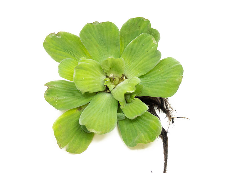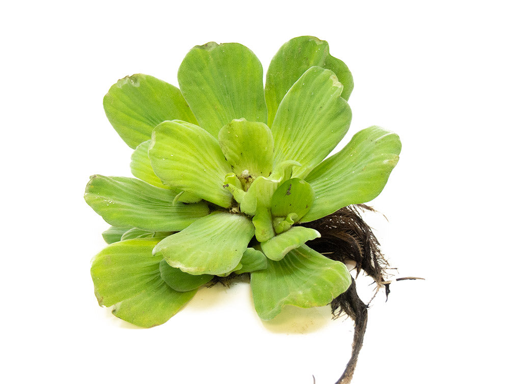 Water Lettuce (Pistia statiotes), also known as Water Cabbage, is a floating plant that is believed to be native to Africa, but has been introduced to many waterways throughout the world. At a maximum width of 8-10 inches (20-25 cm), it is much larger than many other floating plants, so it is an excellent option for providing shade and cover for more reclusive species. Its leaves are substantial and will float at the water's surface, which can also be very useful for small semi-aquatic animals in terrariums and paludariums. Water Lettuce has remarkable denitrification and water clarification abilities, so it is very useful in helping to keep water clean.