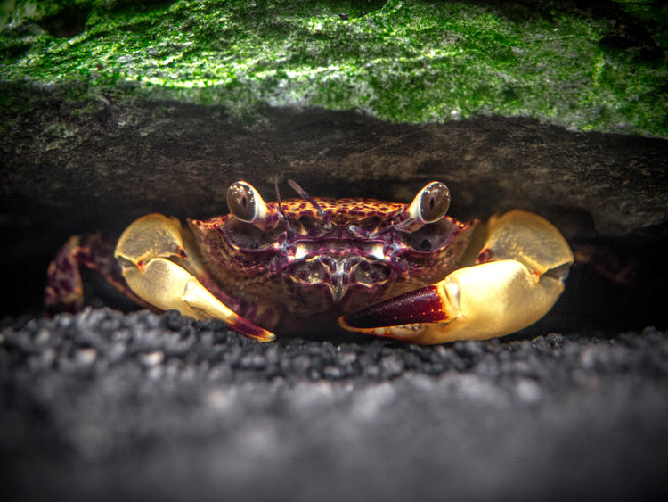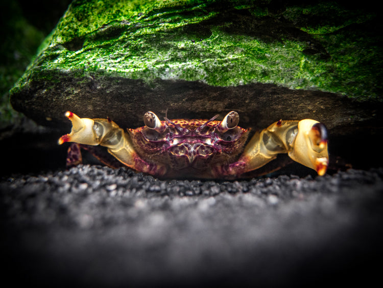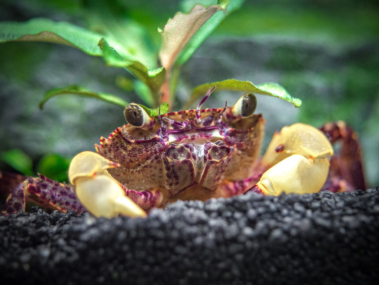 Low Maintenance: While they require a stable aquatic environment with quality water parameters, White Claw Towuti Crabs are relatively low-maintenance in terms of care, which can be appealing for those new to crab keeping.
