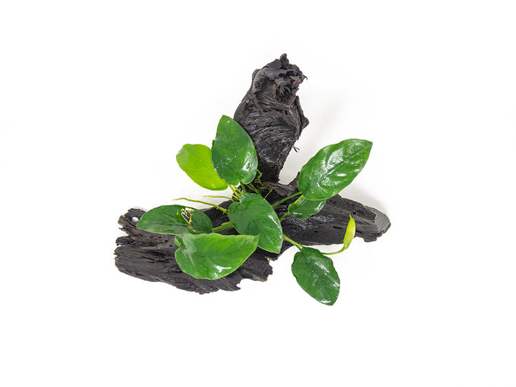 Its deep green leaves, durable structure, and easy care requirements make it an ideal plant for aquarists of all skill levels. Like virtually all Anubias plants, it is extremely hardy, undemanding, and can thrive in a variety of water parameters. We are thrilled to now be able to offer this plant attached to an attractive Malaysian driftwood piece!