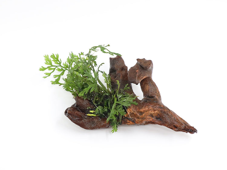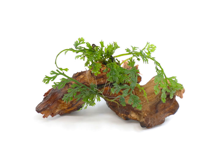 The Mini Bolbitis, also known as Bolbitis heteroclita difformis, is a beautiful and compact aquatic fern with delicate, finely textured leaves. Mounted on a 2-inch piece of driftwood, this plant is perfect for adding a touch of elegance and natural beauty to any aquarium. The combination of the dark, intricate leaves with the natural driftwood creates a striking focal point that can seamlessly integrate into various aquascapes, from minimalist designs to more complex planted tanks.