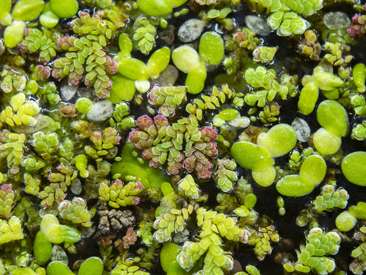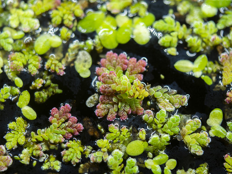 Mosquito Fern (Azolla caroliniana), also known as Fairy Moss, is a floating plant that is native to the Southeastern United States. It has a lovely texture and green coloration, and it often turns a reddish hue with maturity, depending on its lighting. It carries symbiotic Anabaena, a blue-green algae which helps the Mosquito Fern to actually fertilize other aquatic plants through nitrogen release. This hardy plant propagates very quickly and can provide shade to areas of the aquarium or pond, which will encourage more reclusive species to come out of hiding. This is a truly beautiful and very beneficial plant for aquariums and ponds with gentle water flow.