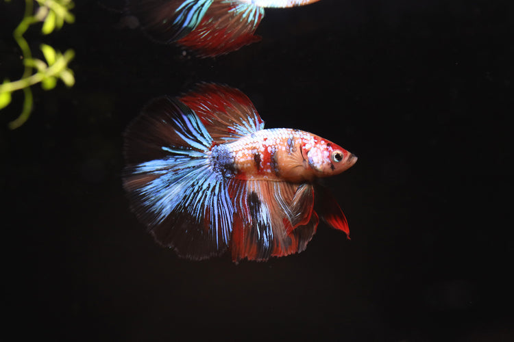 The Halfmoon Koi Betta is a stunning variation of Betta splendens, prized for its beautiful, multicolored patterns reminiscent of koi fish. The striking combination of red, orange, black, blue and white hues is displayed on the Betta’s large, 180-degree spread fins, creating a vivid and dynamic look in any aquarium. With its dramatic fin shape and koi-like coloration, the Halfmoon Koi Betta is a unique and eye-catching addition to your tank.