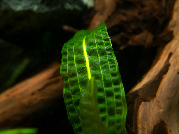 Hammer Leaf Bulb (Aponogeton bolivinianus) is a favorite among many aquarists. This bulb plant grows to a very impressive size, and very quickly with good care. It produces dozens of wavy leaves, all of which can easily surpass 12 inches in length. Hammer Leaf Bulb is very hardy and undemanding in care, so it is an excellent plant for beginners and experts alike. As it grows, it produces a bloom stalk that will eventually have a small white flower above the water line. This centerpiece plant is sure to be a focal point in any aquarium