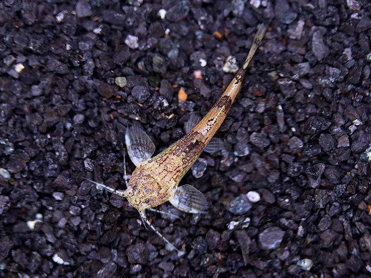 The Burmese Marble Catfish (Akysis prashadi) is a rare and captivating nano catfish species collected from the fast-flowing streams of Myanmar. Known for its beautifully mottled black and tan body and its compact size, this species thrives in peaceful community or species-specific aquariums with plenty of cover. Despite their shy nature, they are highly sought after for their unique appearance and bottom-dwelling behavior.