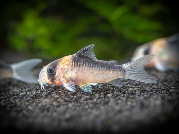 The Adolfo's Cory Catfish is a very peaceful schooling fish that is compatible with most nano aquarium animals, including dwarf cichlids and angelfish. It might prey on some smaller dwarf shrimp, but is safe with larger shrimp and most other peaceful ornamental invertebrates. It is a classic scavenger and will inhabit and feed at the aquarium floor. Very coarse substrate can damage its delicate barbels and underbelly, so it should be kept in an aquarium with sand or very smooth gravel substrate. This fish is otherwise undemanding as it will accept most dry, frozen, and live foods. It is adaptable to most tropical freshwater conditions as long as standard regular maintenance is performed and sudden changes are avoided.