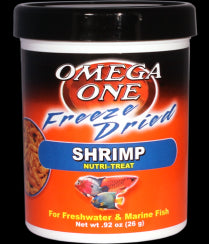 These tasty morsels, high in protein and natural color enhancers, are an excellent choice for larger carnivorous fish. Omega One Freeze-Dried Shrimp are great for frogs and turtles and work as a nutritious substitute for crickets, worms, and other messy live foods.