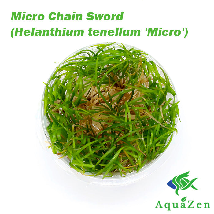 The Helanthium tenellum 'Micro', also known as Micro Chain Sword, is a compact, grass-like carpeting plant perfect for nano tanks and aquascapes. With its thin, bright green leaves and delicate growth pattern, this plant creates a lush, natural-looking foreground that enhances the depth and realism of any aquascape. Compared to standard Helanthium tenellum, the 'Micro' variety stays smaller and more refined, making it an excellent choice for planted tanks of all sizes.