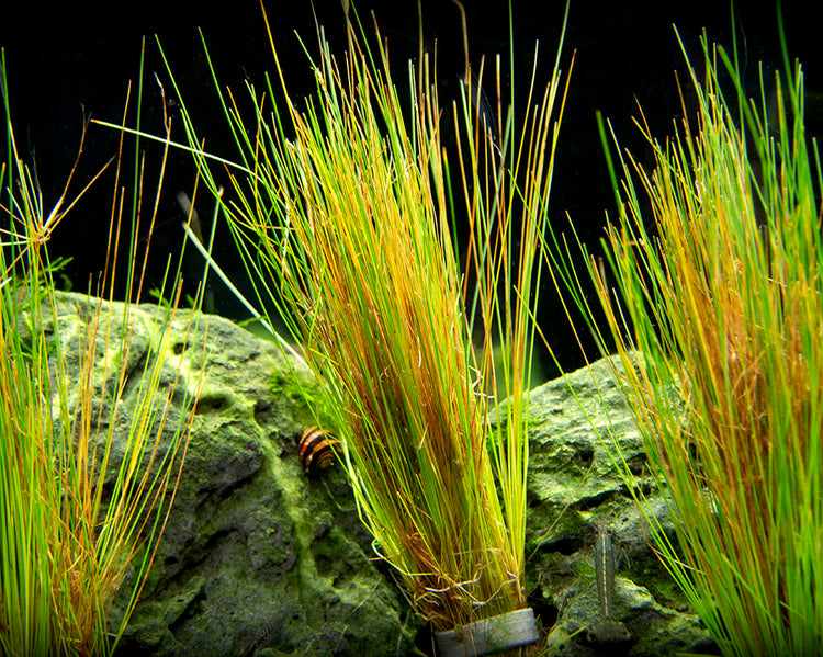 Hairgrass grows extremely fast under the right water conditions and is capable of quickly covering the floor of your aquarium. It grows much taller than other carpeting plants, making it excellent for providing cover for any and all critters that might dwell in your tank. It may require trimming back due to its speed of growth, especially in set-ups with high-intensity lighting.