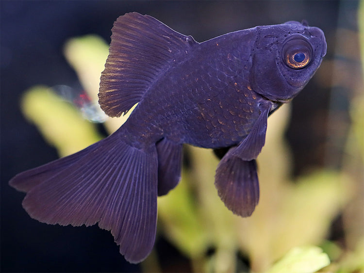 Best kept with other fancy goldfish of similar size and swimming ability, such as Orandas, Ranchu, or other Black Moors. Avoid fast single-tail goldfish and fin-nipping species, which may outcompete or stress them.