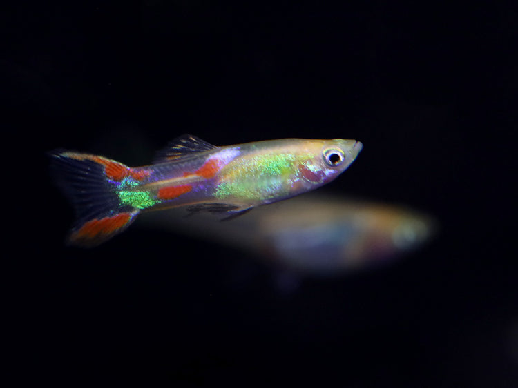 These guppies are social by nature and thrive in groups, where their behavior and stunning appearance can be fully appreciated.