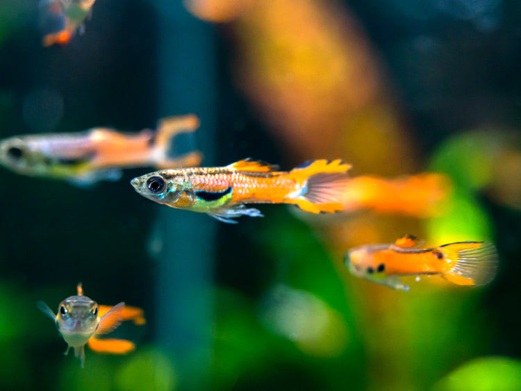 While not a picky eater, the Red Scarlet Endler will thrive and remain very colorful on a varied diet of meaty foods supplemented with spirulina or other nutritious vegetable matter. High-quality and flake food, pellets, and frozen or freeze-dried foods will all be readily accepted.