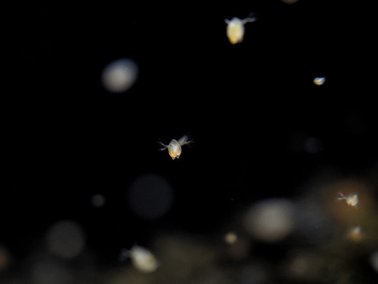 Daphnia (Daphnia magna), also known as Water Fleas, are small, kidney bean shaped invertebrates that are native to rocky pools along the Atlantic coastline of the northeastern United States. Many members of the genus are also native to brackish and marine habitats. Daphnia are filter feeders, so green water is recommended. They regularly consume zooplankton and phytoplankton. In the aquarium, Daphnia are a superb food source for micropredators, especially small fish. They are often effective in bringing out vibrant colors and spawning behaviors in fish.