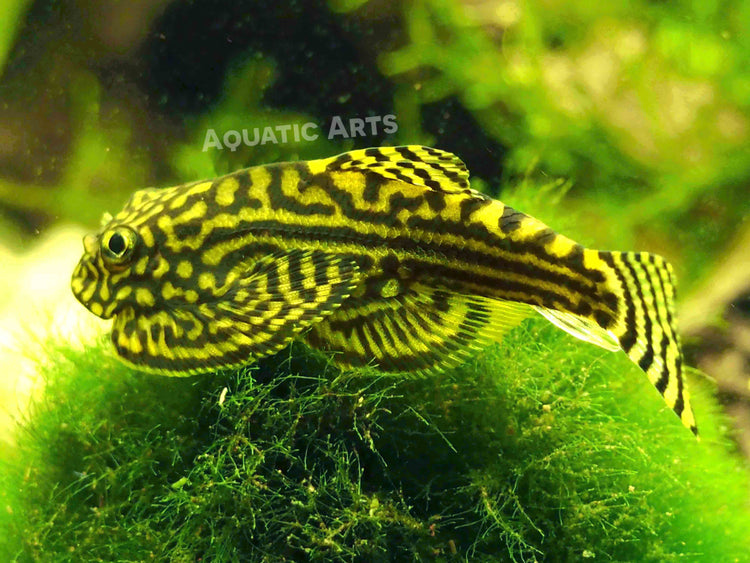 The Reticulated Hillstream Loach (Sewellia lineolata) is an exceptional freshwater hillstream loach that is native to Vietnam and Laos. It is known for its beautiful coloration, its peaceful yet outgoing demeanor, and its fascinating social behavior with members of its own (and similar) species. This fascinating, peaceful fish is an algae and biofilm grazer that is an excellent candidate for the mature subtropical aquarium. In addition to our wild-caught specimens, Aquatic Arts also offers tank-bred Reticulated Hillstream Loaches, giving aquarists a sustainable choice with the same beauty and behavior. These are young specimens.