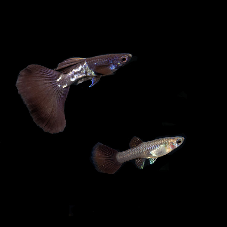 While not a picky eater, the Black Metal Snakeskin Guppy will thrive and remain very colorful on a varied diet of meaty foods. High-quality flake food, pellets, and frozen or freeze-dried tubifex and bloodworms will all be readily accepted.