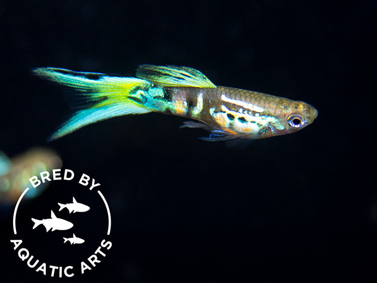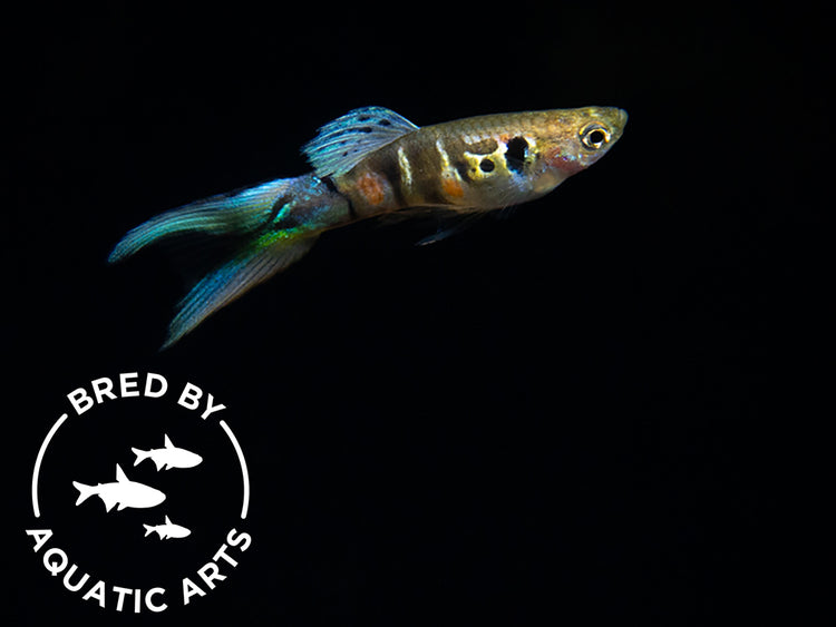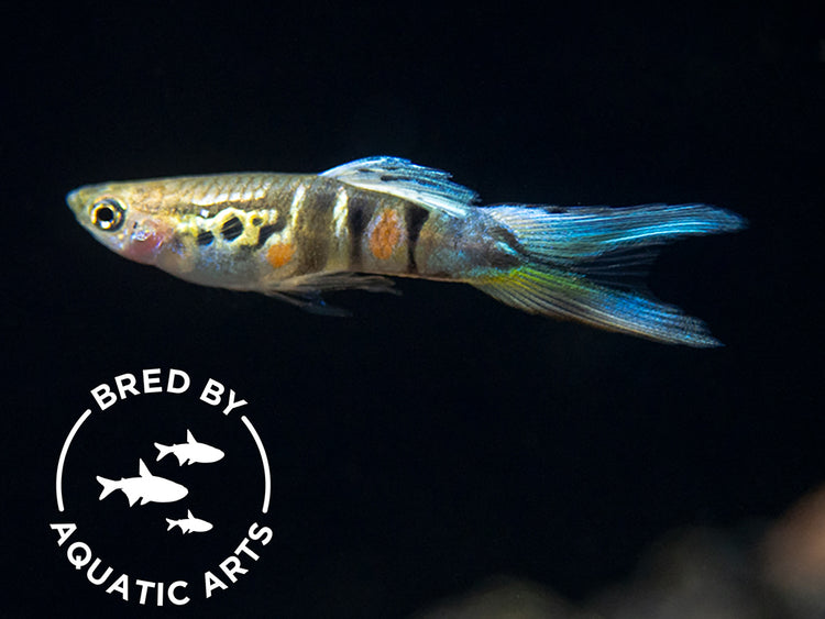 This magnificent endler is one of the most exquisitely beautiful varieties ever developed! It has striking blue fins and a beautiful tiger pattern. We are proud to offer specimens bred in house at Aquatic Arts!