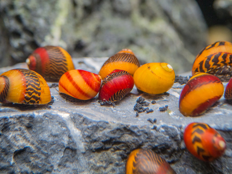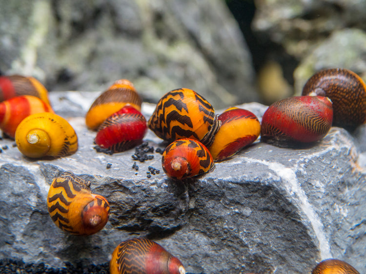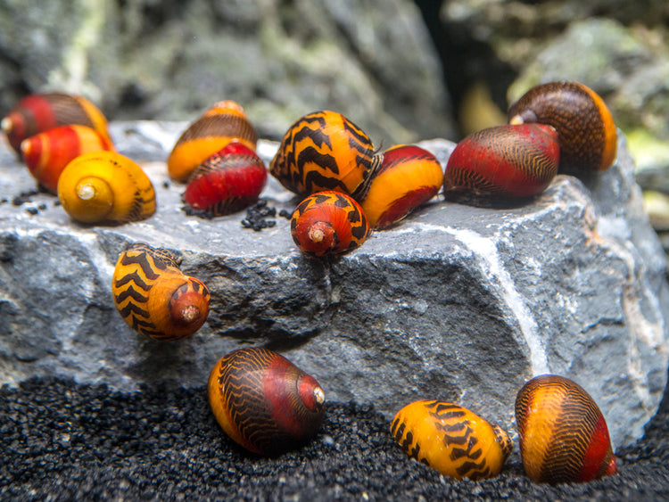 These snails create an extremely attractive color combination while providing diligent scavenging and algae eating services!