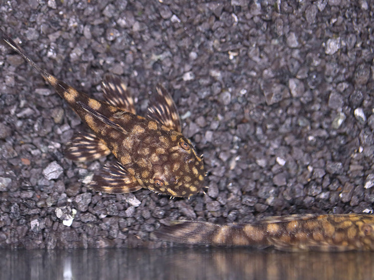 The L157 Red Spot Bristlenose Pleco originates from river systems in South America. In the wild, they inhabit slow-moving waters with ample driftwood, rocks, and submerged vegetation, where they graze on algae and biofilm.
