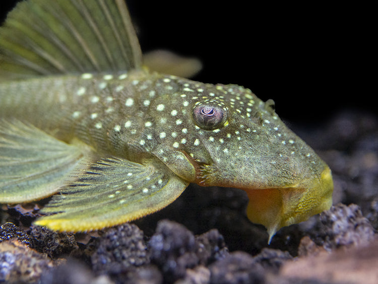 The L200 Green Phantom Pleco (Hemiancistrus Subviridis) is a classic suckermouth catfish species that is native to the Rio Orinoco in Colombia and Venezuela. It is a popular pleco species for any aquarium due to the striking striking green color with white dots. It inhabits fast flowing, oxygen rich waterways in the wild, so a bit of extra flow in the home aquarium is appreciated, but not required. This pleco can be housed with a wide array of tankmates including community fish, as well as semi-aggressive cichlids.