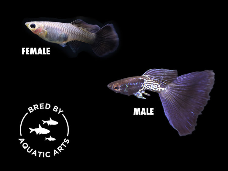 The Black Metal Snakeskin Guppy is a bold and striking addition to any aquarium, showcasing intricate snakeskin patterns combined with sleek, dark metallic tones. These guppies are bred in-house at Aquatic Arts to ensure exceptional health, resilience, and vibrant coloration. They are available as pairs (1 male, 1 female), trios (1 male, 2 females), or individual sexes, making them perfect for hobbyists and breeders alike.