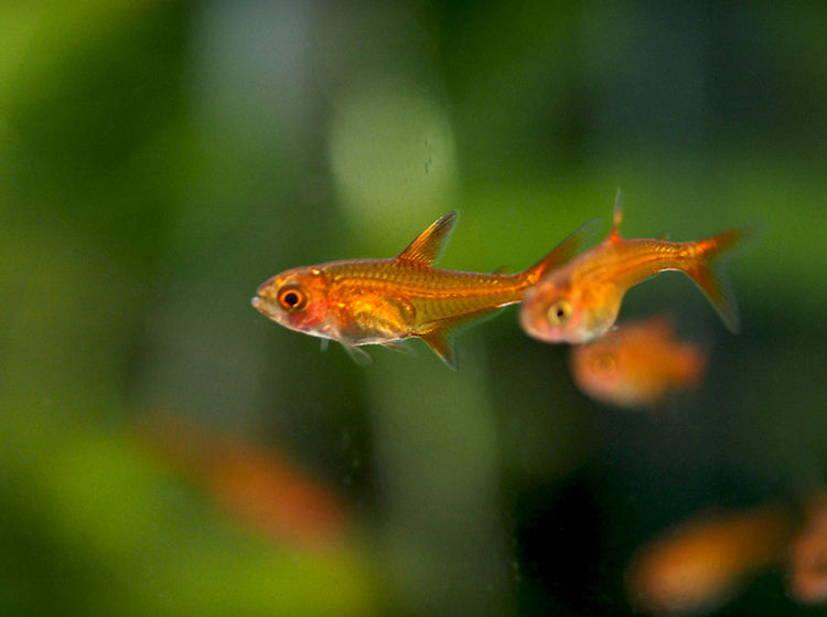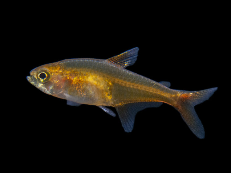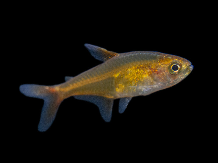 The Ember Tetra typically occupies the top and middle level of the water column, although it can often be seen swimming and feeding in the middle and bottom levels as well. It is safe with other peaceful, small fish. Due to its extra small size, it can be viewed as similar to microrasboras as far as its compatibility with dwarf shrimp. Larger, peaceful invertebrates can also make good tankmates. The Ember Tetra must be kept in schools of 6 or more. Since it is tank-raised, this fish is somewhat adaptable, but its natural habitat contains slightly acidic water rich in tannins and leaf litter. It requires very clean water to thrive and it will display optimal coloration and health in a planted aquarium with dark substrate, especially where floating plants are present. It should not be kept with overly boisterous tankmates that will outcompete it during feeding.