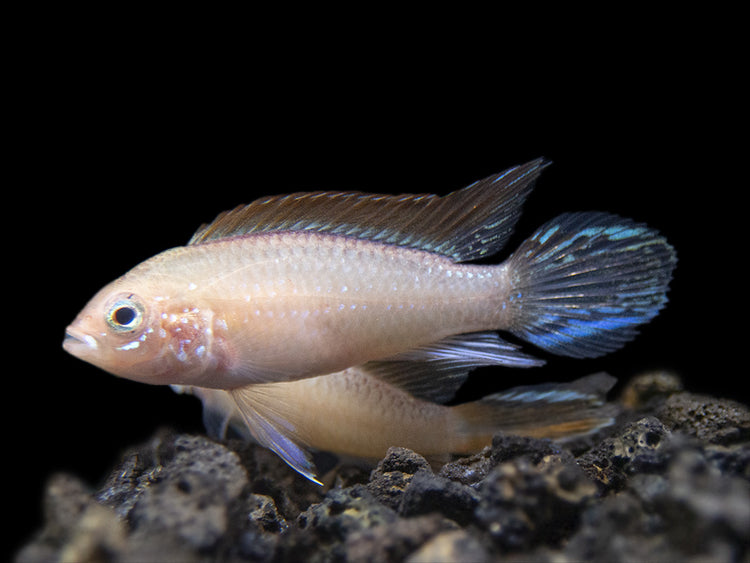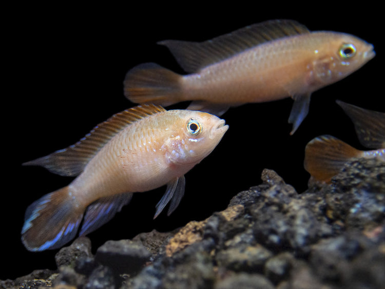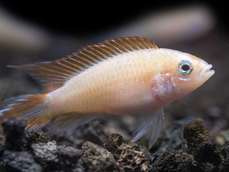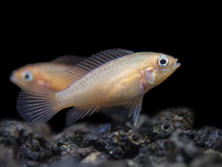 Feeding is simple for the unfussy Gold Fire Red Agassizi's Dwarf Cichlid. High-quality dry, frozen, and live meaty foods will all be readily accepted. Quality and variety are the keys to a diet that will ensure that this fish maintains optimal health and coloration.