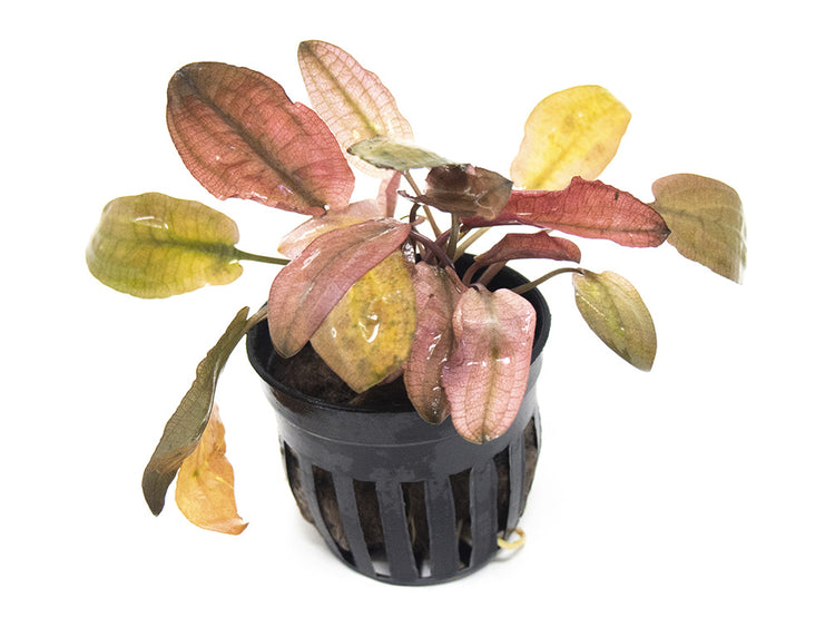 Cryptocoryne sp. "Flamingo" is a highly sought-after plant due to its unique coloration!